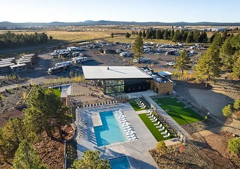 Village Camp Flagstaff: Arizona’s newest outdoor cabin & RV resort. Create your perfect getaway at Village Camp Flagstaff. Your mountain basecamp includes modern amenities like our luxury clubhouse with a bar, bistro, general store and event lawn. Kick back at the mountain-view outdoor pool (seasonal) and year-round hot tub between your Northern Arizona escapades. We can’t wait for you to experience the Village Camp way.